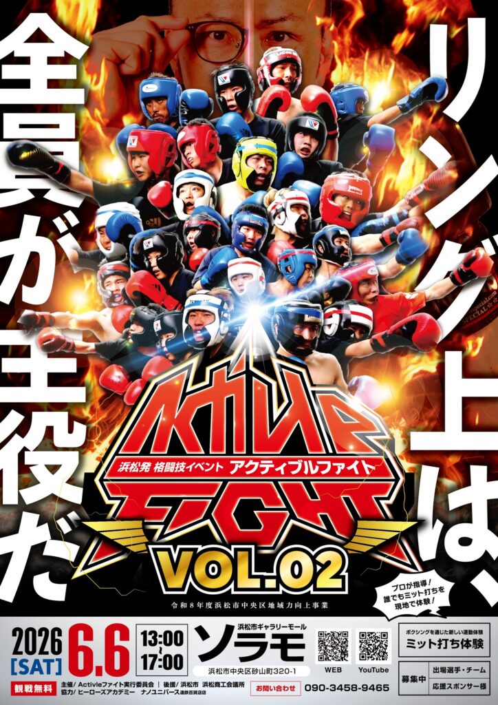 この熱いコンセプトを掲げ、浜松を熱狂の渦に巻き込んだあの格闘技イベントが今年も帰ってきます!浜松発の格闘技イベント『Activle(アクティブル)ファイト VOL.02』の開催が、2026年6月6日(土)に決定いたしました。